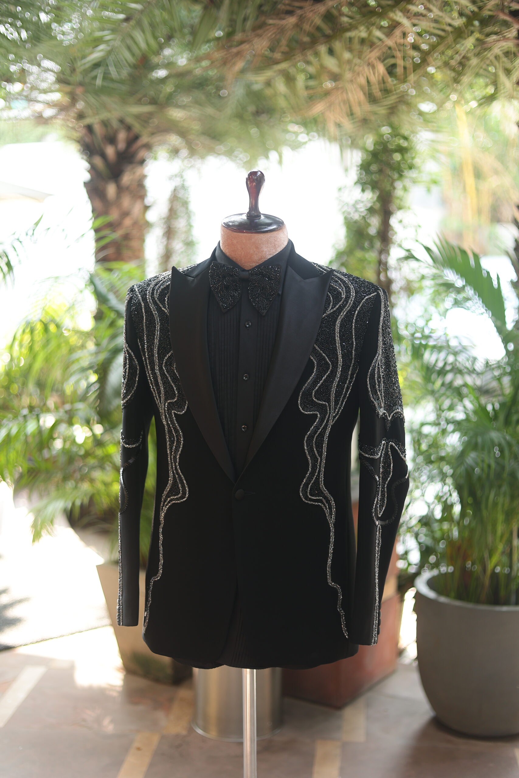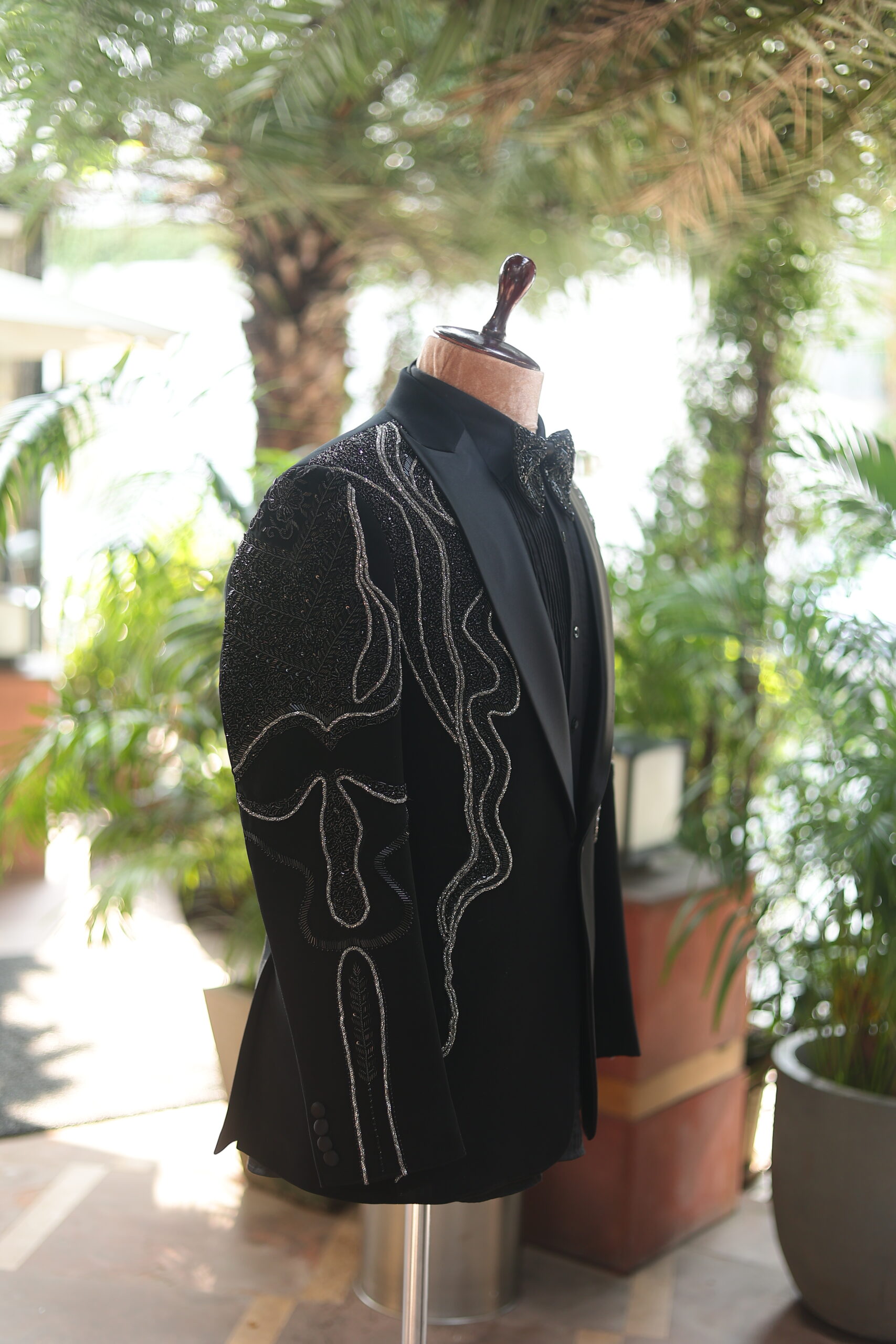 Crafted with precision, the tuxedo features a sleek silhouette that blends classic style with contemporary finesse. Ideal for weddings, formal evenings, or black-tie events, this outfit embodies confidence and understated luxury. The rich black hue and expert tailoring make it a wardrobe essential for every occasion that demands grace and grandeur.